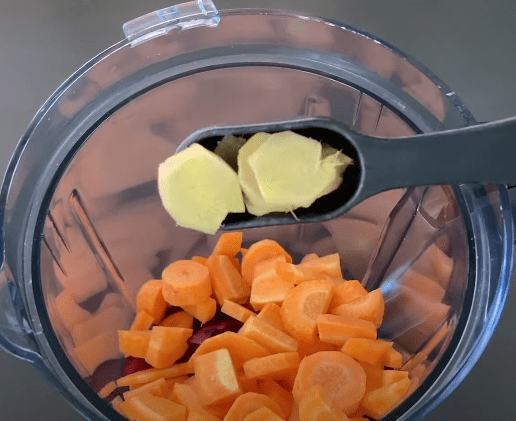 Add all the ingredients — beetroot, apple, carrot, and ginger — into the juicer one by one. Do not add lemon at this stage.