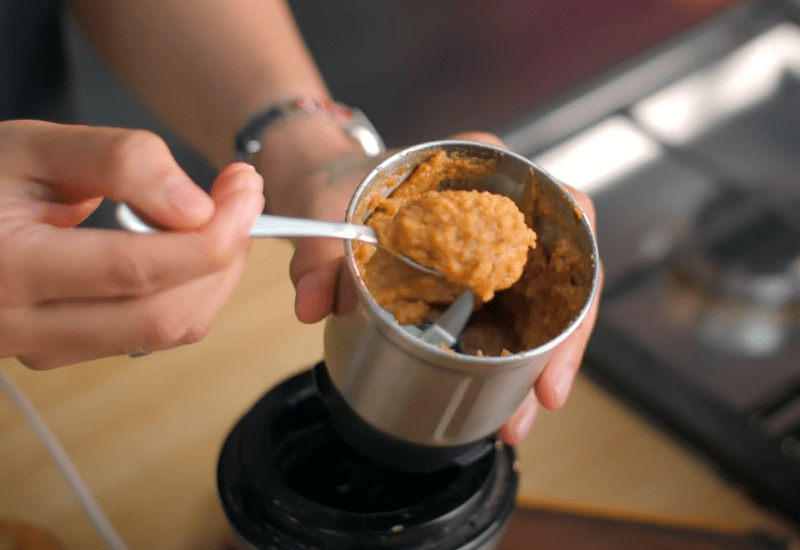 - Transfer them to a mixer jar, add a splash of water, and blend into a smooth paste.