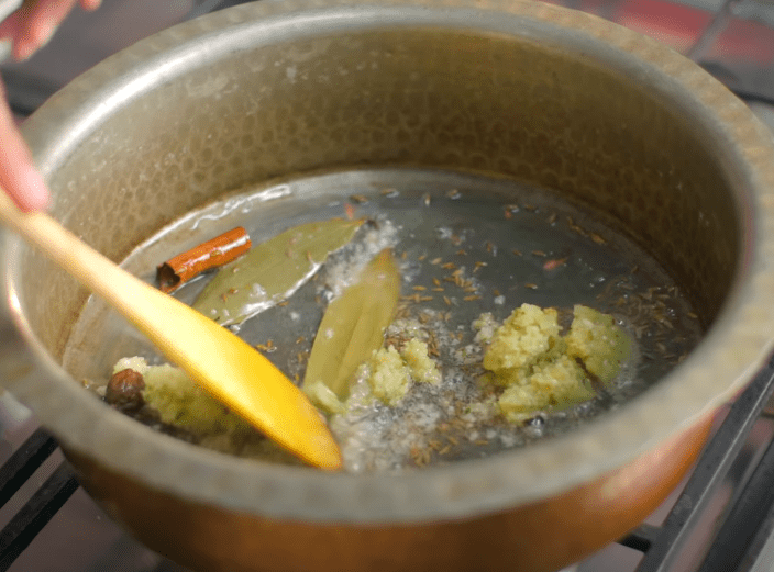 - Add 3 tablespoons of ginger-garlic-green chili paste. Cook for 1 minute.