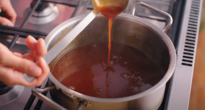 - Remove any foam (scum) that rises to the surface using a spoon.