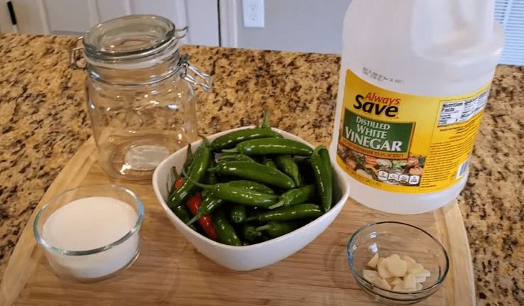 - Carefully pour the hot brine into the jar over the serrano slices and garlic.